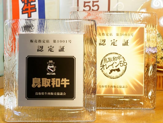 私どもも、鳥取和牛および鳥取和牛オレイン55の販売指定店の資格を取得しております